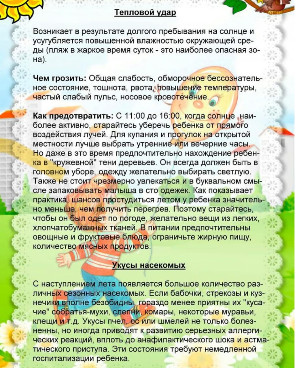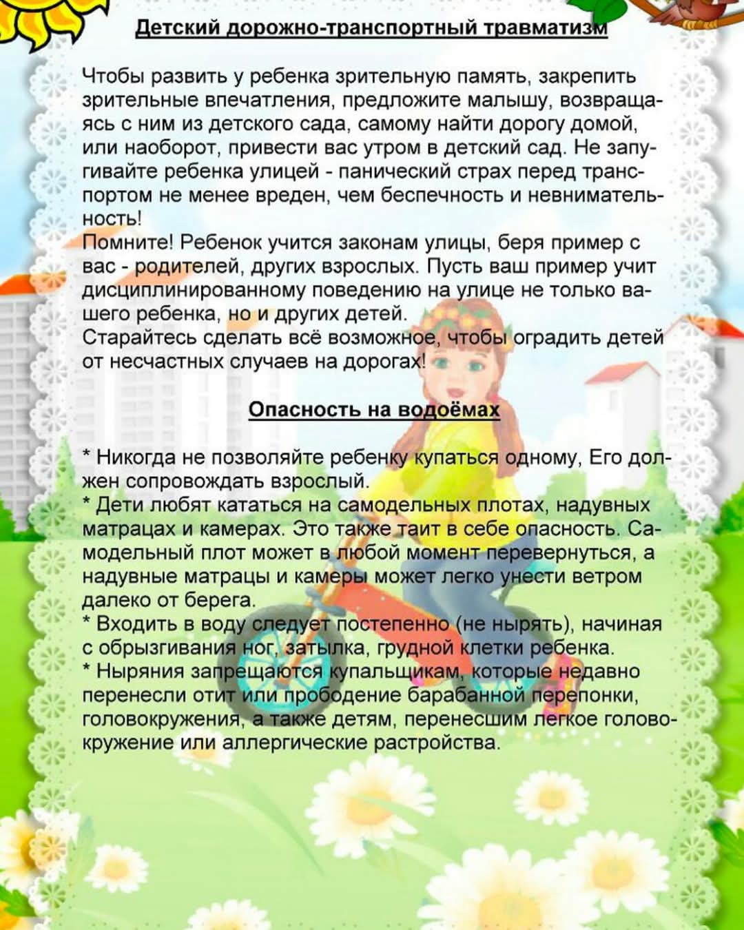 Консультация “Лето и безопасность наших детей”. Цель: информировать родителей о правилах безопасности дошкольников в летний период, способствовать формированию у взрослых ответственного отношения к охране жизни и здоровья детей во время отдыха, игр на улице, водоемах и в быту
